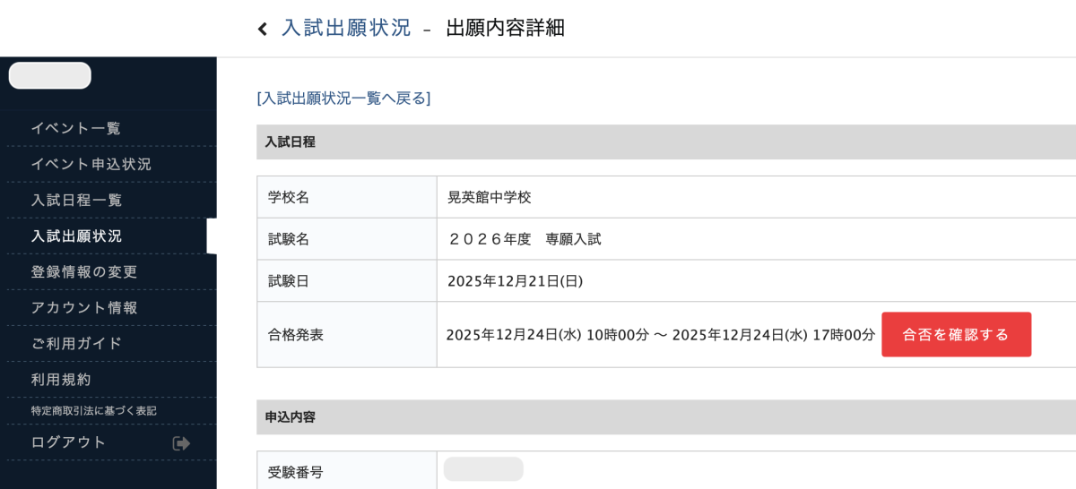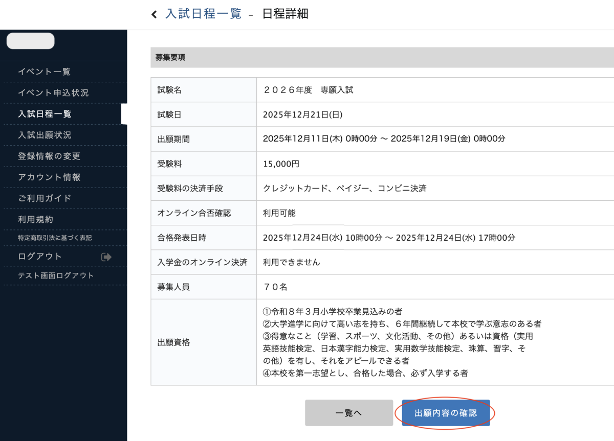 ※入試日程の一覧が表示されたときは、該当の入試日程を選択してください。